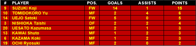 FC Ryukyu: #1 GK Dany Carvajal but no updates as to what is afflicting him. #13 MF Kawai Shuto didn’t feature at all last week and no updates. There are likely more but we have no idea.