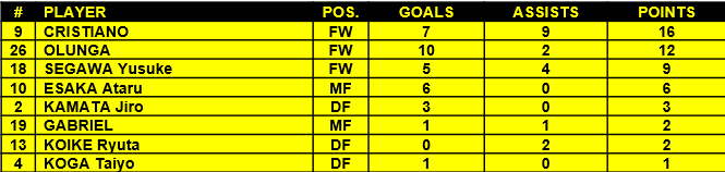 Reysol are doing their best steam roller impression as they are absolutely flattening everyone in their path. 8 wins in a row in all competitions and they are doing it in style. It seems each of the past 8 weeks that either Cristiano or Olunga have scored and now their new signing, Matheus Savio on loan from Brazilian side Flamengo, is also getting in on the scoring action.