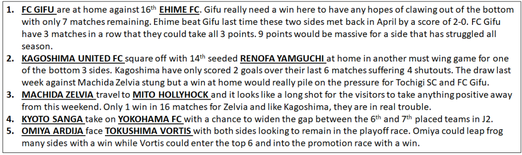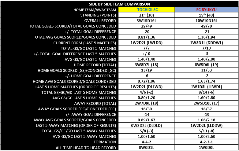 No time to be cute or tinker with the lineup. This is a must win game for both Tochigi SC and FC Ryukyu. Tochigi want out of the bottom 2 and FC Ryukyu want to be able to relax the remainder of the season, get some younger players into the lineup to gain some valuable match experience, and see what they have before the winter transfer window opens.