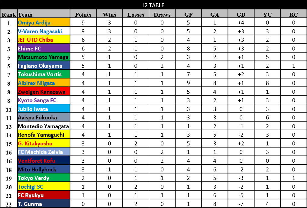 Some interesting result this past weekend. JEF and Ehime’s impressive road wins by 3 goals each has propelled those two sides into the top 3. Ehime’s start of 2020 reminds me a lot of how FC Ryukyu started last year. Tons of goal in both directions with some exciting results.