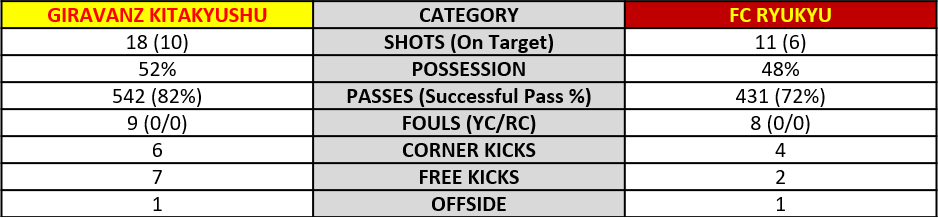 There is no way to sugar coat the result. FC Ryukyu were outplayed in every facet of the game and were left completely decimated by Kitakyushu on Saturday. I for one was expecting a similar type of result, in favor of FC Ryukyu that is, and thus left flabbergasted with the outcome. There really is no excuse for allowing 4 goals inside of 45 minutes. and this leaves many of us to wonder, how could a side play so well in their previous two matches only to come completely unhinged against a perceived lesser opponent? This leads to two important questions. Where was the attack and possession we’ve become so accustomed too this year? And what needs to change so this doesn’t happen again?