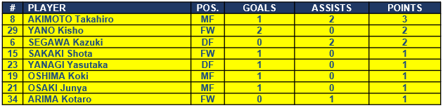 Speaking of scoring, Takuma Abe is on a tear of late as he has scored 4 times in as many games to bring his total to 6 on the year. Good enough for joint 2nd in all of J2. That is the most goals Abe has scored since 2015 and he looks on pace to reach his highest ever total in J2, 18 goals. So long as he can stay healthy.