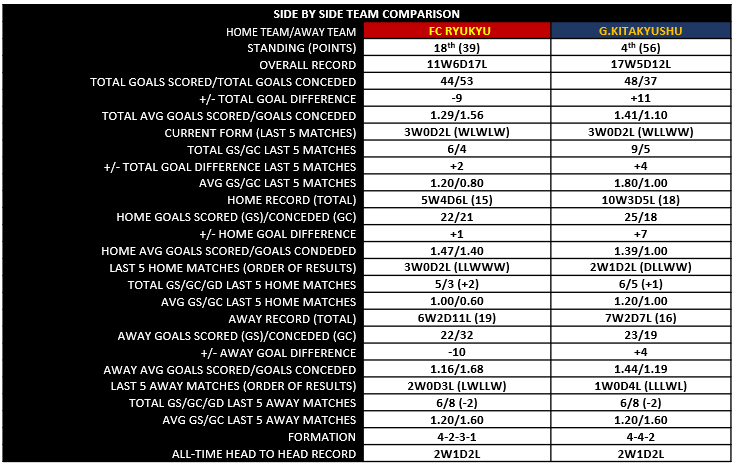 FC Ryukyu: FC Ryukyu carry a 3-game home unbeaten streak into this match with an overall record of 5 wins, and 5 losses, in their past 10 games. It seems odd that FC Ryukyu haven’t drawn a match in over 10 weeks and I wouldn’t expect one this round either.