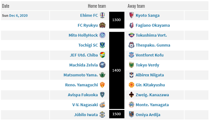 (1) Tokushima Vortis will look to close out one of the promotion slots this week when they travel to (12) Mito Hollyhock. A win secures them promotion, but a (2) Avispa Fukuoka loss to (15) Zweigen Kanazawa would give them the title. (3) V-Varen Nagasaki’s tough road continues when they host (7) Montedio Yamagata in a win or go home game.