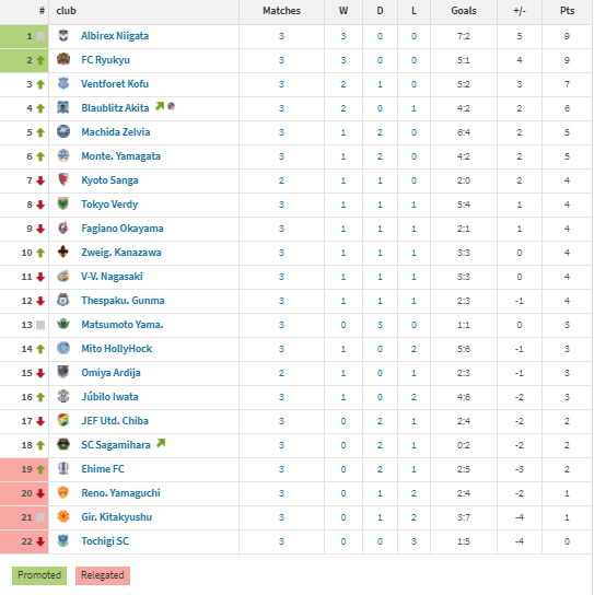 Job done, 9 points from 9 and now it is time to turn our attention to V-Varen Nagasaki this week. The fast start by Ryukyu mean they enjoy a nice 7-9 point cushion over the bottom four sides in the league. But anything could happen over the course of the next few weeks to shrink that total. Still, it is better to be in this position with these points compared to some of our opponents at the bottom.