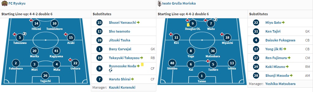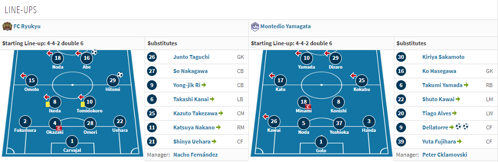 Hyon-ju Ryang opened the scoring in the very first minute of the game with a 60-yard chip over the Okinawa GK Hanada (31:00) who must’ve drifted way to far off of his line. You can’t really tell from the highlights where Hanada was at as all you’ll see is the shot and Hanada picking himself up and picking the ball up out of the back of the net. This was the first time this season where Okinawa SV found themselves playing from behind.