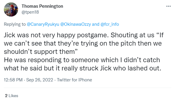 Okinawa SV were unable to capitalize on their momentum and possession and once again found themselves down a goal when in the 82′ minute (2:08:00) Shota Tamura doubled his tally on the day with a lovely rounding of the OSV keeper and cool finish stemming from a fast break out of the Mie end. To be fair, I think they play should’ve probably never happened considering that Shuga Arai was absolutely cleaned out on a play which should’ve been blown dead for a foul but one in which the ref was just going to allow the players to play.