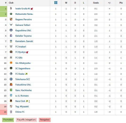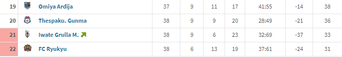 The only goalless game of this round happened between (9) Honda FC and (4) Reilac Shiga. Then there are the two bottom sides of (15) Criacao Shinjuku and (16) Briobecca Urayasu who have yet to score a goal this year. It must be serioulsy deflating to Briobecca to have lost all their games 1-0.