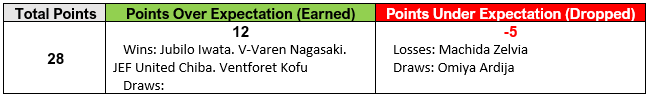 FC Ryukyu: While the results for Ryukyu were not great these past five games, I wouldn’t necessarily say that it has been their worst run of form all season when compared to rounds 1-5 and 6-10. In their opening five games Ryukyu were undefeated with a 10/3 goals scored/conceded ratio and earned 2 shutouts. Easily the best to date. In matches 6-10 that ratio dropped to 5/3 with a 3-1-1 record but they recorded 4 shutouts during that time. So no offense but stout defending. Finally, in games 11-15 Ryukyu had a 10/6 goals scored/conceded ratio but only one shutout while going 2-2-1. But a majority of those goals (9) came in just two matches for Ryukyu which also saw the boys from Okinawa shutout on two occasions, matching the total from rounds 6-10. So it is kind of a toss up between the last two sets of games. So what is going on?