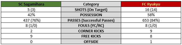 1. The offense must carry the day. Likelihood 2. FC Ryukyu started out strong by grabbing the early lead but they couldn’t sustain the lead as the offense tapered off when they needed it the most.
