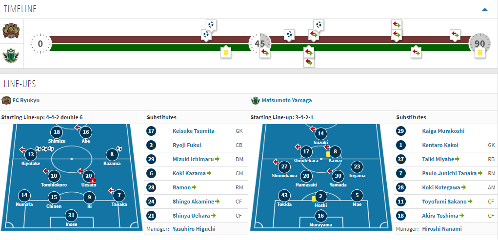 Heading into this matchup it is anyone’s guess as to who Kina will start as Ryukyu have been pretty consistent on rotating players in and out of the starting eleven all season. Ikeda returned last week from a one week absence, Yu Tomidokoro seems to have secured one of the starting CM roles over Kazuto Takezawa, Abe and Kiyotake both started, Yuki Omoto made his first start at RB, and Rio Omori has gone missing the past two weeks thus allowing Yong-Jick a return to the bench. It is great to have all these options but it likely leaves the side a little unsettled. Perhaps Kina is deploying a strategy of forcing players to earn the starting role each week compared to that of his predecessor who based it solely on name brand recognition, which is a good thing. What isn’t a good thing is needing the offense to get going and shifting many players around who cannot get into any sort of rhythm. I guess we’ll see this week.
