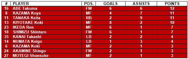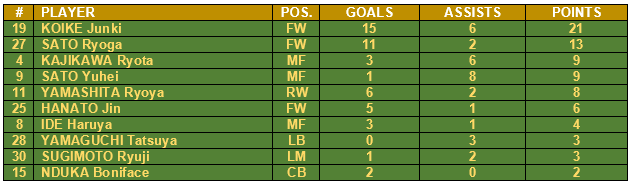 Ventforet Kofu: Kofu started the season slow with only one (1) win their opening eight (8) fixtures. Where have I seen that before? Never mind. They then embarked on a four (4) game winning streak that propelled them into the sixth spot of the table. A position, despite some recent wobbles, they still maintain as of match day 17.