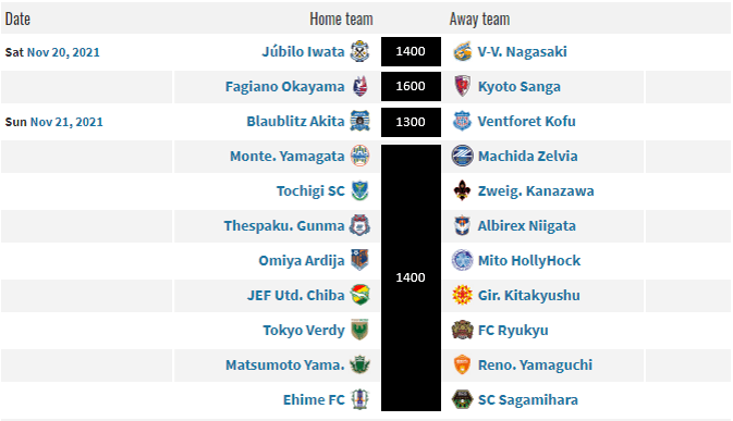(6) Tokushima Vortis has the toughest fixture this round for any of the teams involved in the playoff race as they travel to (8) Montedio Yamagata who are just one point behind Vortis in the standings. An obvious win or go home situation for both teams and they’d like a little help from (12) Blaublitz Akita who are playing (7) Vegalta Sendai at home. These games should make for some exciting football to watch during the final slate of games this season.