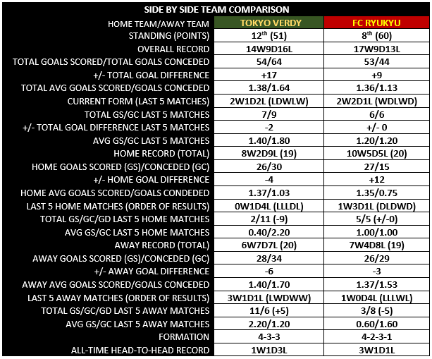 3. Get on the scoreboard first. Likelihood 3. Verdy looked good when they took the early lead in their past two wins, and lifeless when they conceded the first goal. It is vital that Ryukyu start fast, and score (unlike what they did against Renofa), as that could lead to even more opportunities and goals for a side struggling in the atatck. Ryukyu have not won by more than two goals in any game since match day 20, which was also the last time they’ve scored more than two goals in a game. However, 11 of Verdy’s 16 losses have been by more than two goals this season. Perhaps this provides a little glimmer of light at the end of an abysmal goal scoring tunnel for Ryukyu.