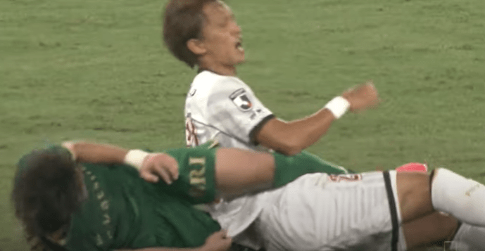 Ryukyu returned the favor from the 5-1 loss in 2019 by defeating Verdy by four goals on MD 37 of 2020 while also shutting them out for the second time in a row. 2021’s series started off with a bang when, to everyone’s surprise, Yuhei Sato from Verdy decided to impale Yu Tomidokoro’s testicles with the heel of his boot. Yu went after a loose ball from a challenge by the now laying on his back Sato, but Sato wasn’t going to allow a Ryukyu player the advantage of collecting the ball and heading into attack. Instead he opted for a less than professional foul. Too bad that challenge occurred in front of the referee, fourth official, Higuchi and pretty much everyone watching at home. That resulted in a red card that reduced Verdy to 10 men and allowed Ryukyu to score two goals towards a 2-0 victory. The second Ryukyu goal, a PK, came from another infraction inside the penalty area by Verdy.