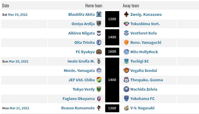 With that out of the way, let’s take a look at those teams struggling at the foot of the table. (19) Tochigi SC, who haven’t won in nine (9) games, travel to (11) Tokushima Vortis. Vortis are coming of consecutive losses (1 in J2, 1 in the Levain Cup), are looking to rebound, and are the best defensive side in the table based on goals allowed while Tochigi is one of the worst scoring sides in J2. (20) Omiya Ardija host (1) Vegalta Sendai after losing to Iwate in the midweek while down their starting GK. Omiya will have played two (2) games inside of a week when Ryukyu come to town so perhaps they rest some players (aka rollover) in order to prepare for the all important 6-pointer with FC Ryukyu next Wednesday. Perhaps Ryukyu does the same this week??