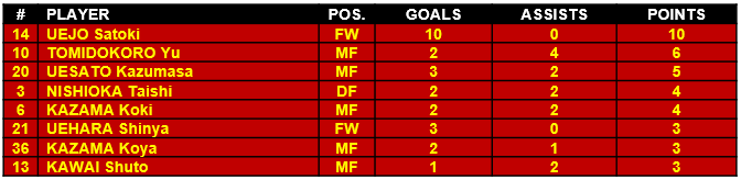 Koya Kazama: Koya had a resurgent year after fully transferring to FC Ryukyu from FC Gifu this past offseason. Koya ended up leading FC Ryukyu in points with 10 goals and 6 assists. A majority of that scoring took place over a stretch of 2 games when he scored 3 goals and added 3 assists. But make no mistake, Koya was an integral part of the FC Ryukyu attack.