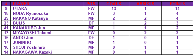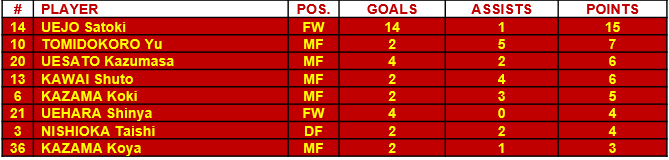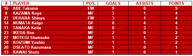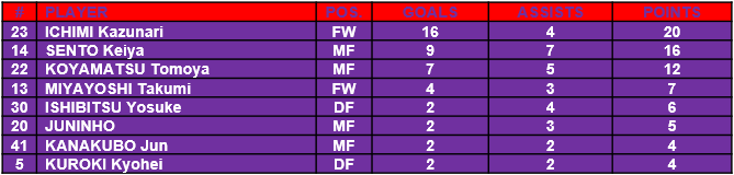 Mito have only lost once over their last five games where they had an impressive victory over Tokushima Vortis on the road. Mito are loaded with goal scoring talent up top featuring Kashima Antler’s on loan Kazuma Yamaguchi who has scored 8 goals and provided 6 assists which must put him near the top of the league leaders in total points. Forward Masato Nakayama has contributed 6 goals and 2 assists to go along with Pitbull’s 5.