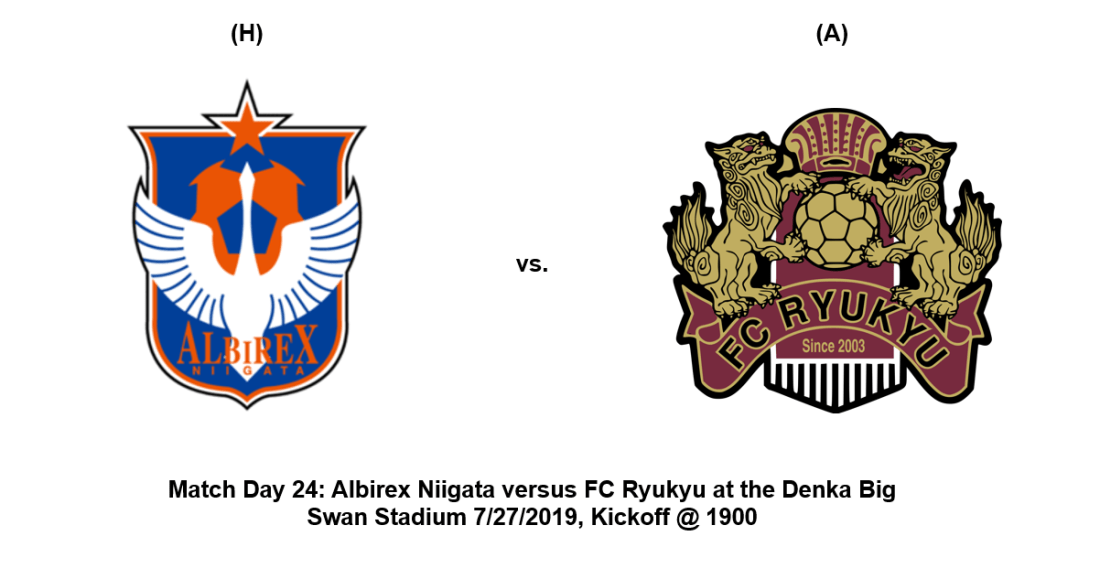 The FC Ryukyu “Road Show” continues this week with the boys from Okinawa visiting the Denka Big Swan Stadium in Niigata for a mid table clash. FC Ryukyu are coming off their third road loss in a row and will look to finally end their winless drought against Niigata. Niigata on the other hand, are also looking to get back to winning ways at home after suffering a loss to Yokohama FC which was then followed up with 2 all draw against Renofa Yamaguchi. Both sides could really use the win, so this should be an entertaining game to watch.