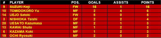 5. FC Ryukyu have now surrendered 10 goals in the past 3 matches. They have scored 6 during that span and that usually may have been enough to earn a win or at the very least a draw. The defense is ceding goals at the rapid rate and they need to stop the bleeding soon.
