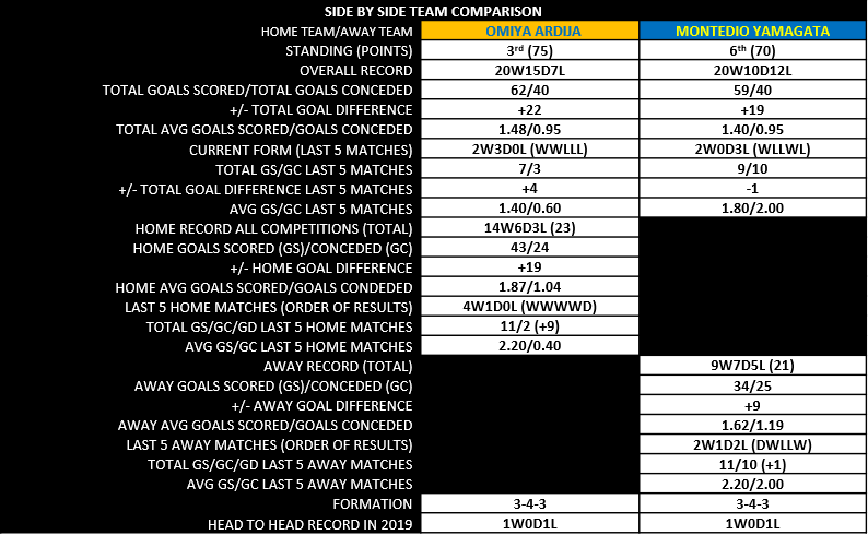 Omiya entered the match having lost only 3 times at home all season while conceding only 2 goals to their opponents during their last 5 home games. Montedio on the other hand, lost 4 out of the final 10 road games and were conceding at nearly the same rate they were scoring as the visitors. However, there were some visible cracks to the Omiya side as they had only scored 1 goal from open play, the other being an own goal, over their final 3 matches. Meaning, the Omiya attack had dried up and was failing to fire at the worst possible time.