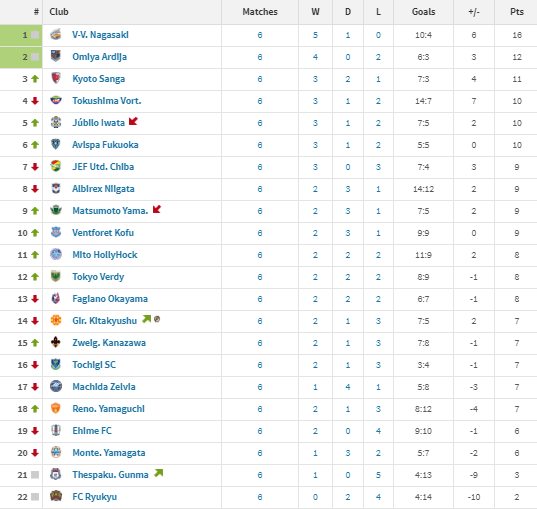 A very low scoring weekend as there were only 19 total goals scored this round. Albirex took the top slot with their win over Nagasaki, with Akita earning their first ever J2 victory. Jubilo responded from their loss to Ryukyu by suffering a heavy defeat at the hands of Zelvia. I think Giravanz committed another own-goal for the second game in a row, that made all the difference this past Saturday.