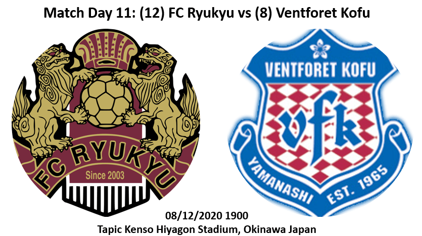 Ryukyu shook off their first loss of the season by defeating Ventforet Kofu for the first time in the team’s history 2-0 on Sunday evening. A late, some might say controversial, goal by Ren Ikeda in the 90th minute was all that Ryukyu needed to see out the three points. The win keeps FC Ryukyu three points above Kyoto in the automatic promotion slot while also restoring some of the confidence that may have been lost at Machida.