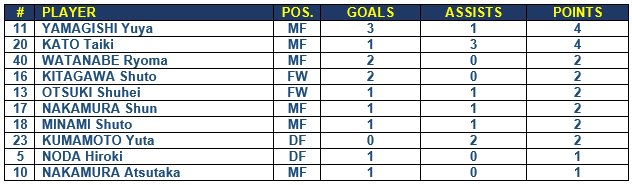 Players to Watch from Montedio Yamagata: #4 MF Kai Miki: Has a very nice shot but most importantly, he is top quality on set pieces. He delivers very nice, and very dangerous, set pieces and corners. #11 FW Toyofumi Sakano, scored both of Yamagata’s goals against Yokohama from set pieces provided by Miki. #9 Jefferson Baiano: Powerful FW that has scored in consecutive matches.