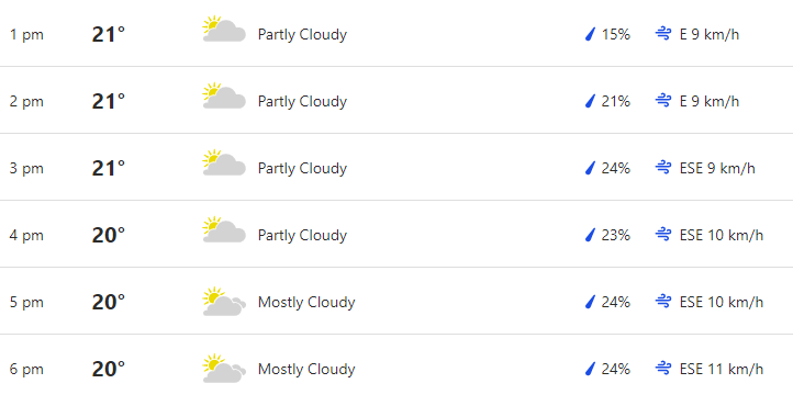 giving way to partly cloudy skies with temperatures in the low 70s (22 degrees Celsius)